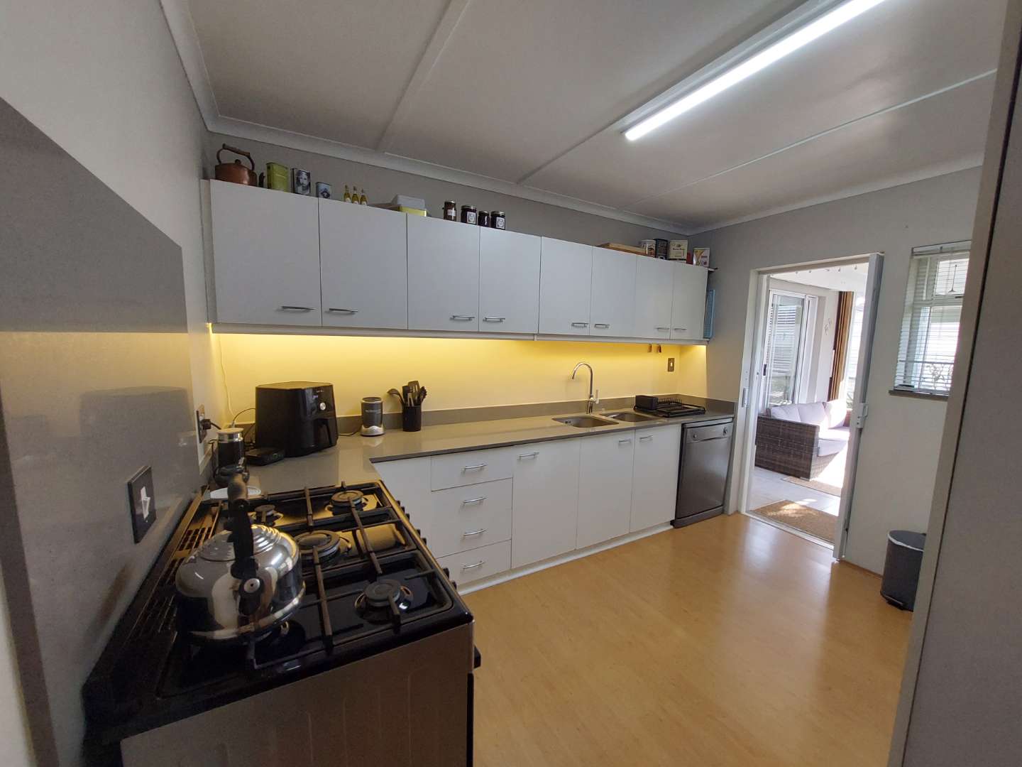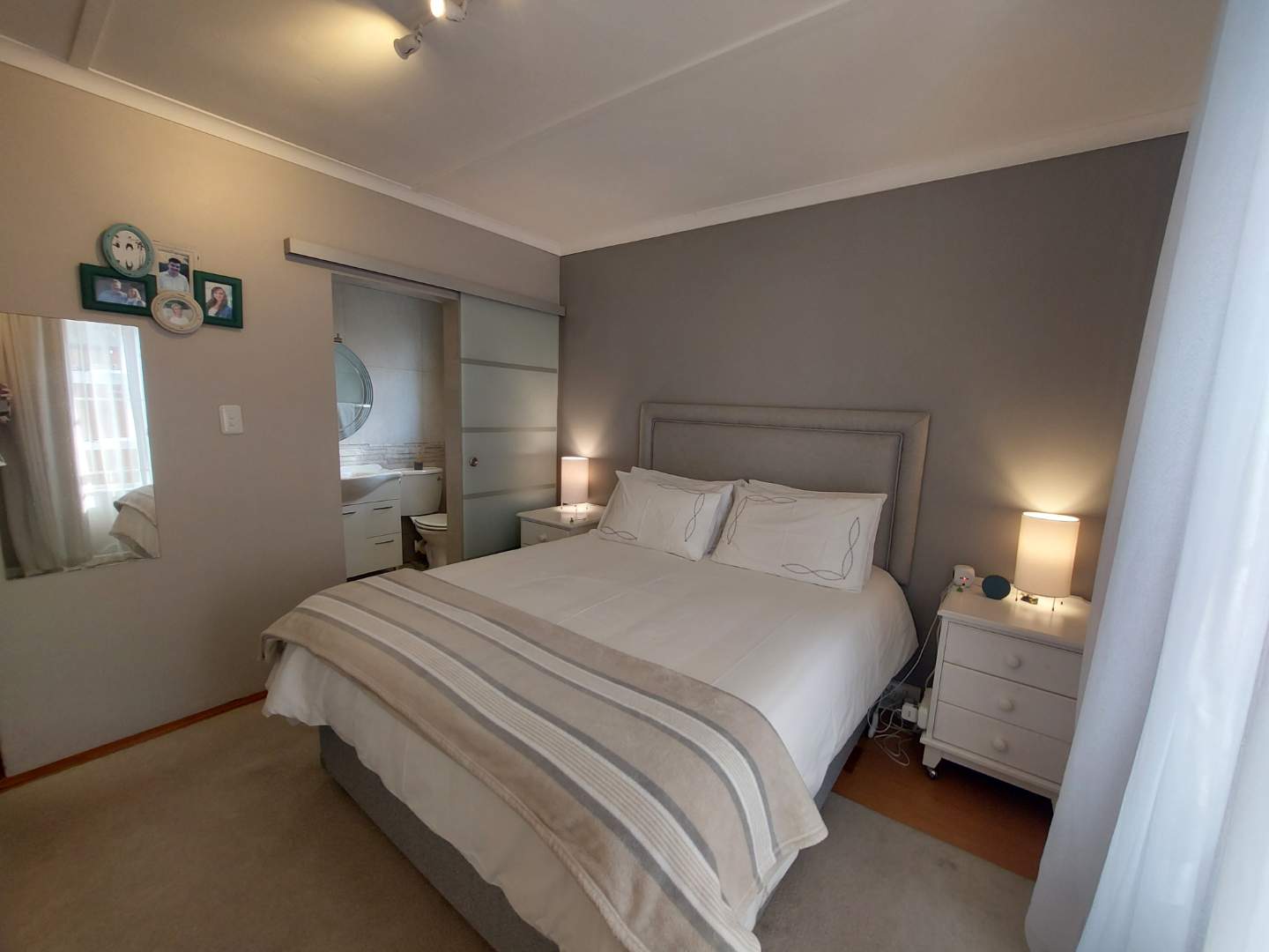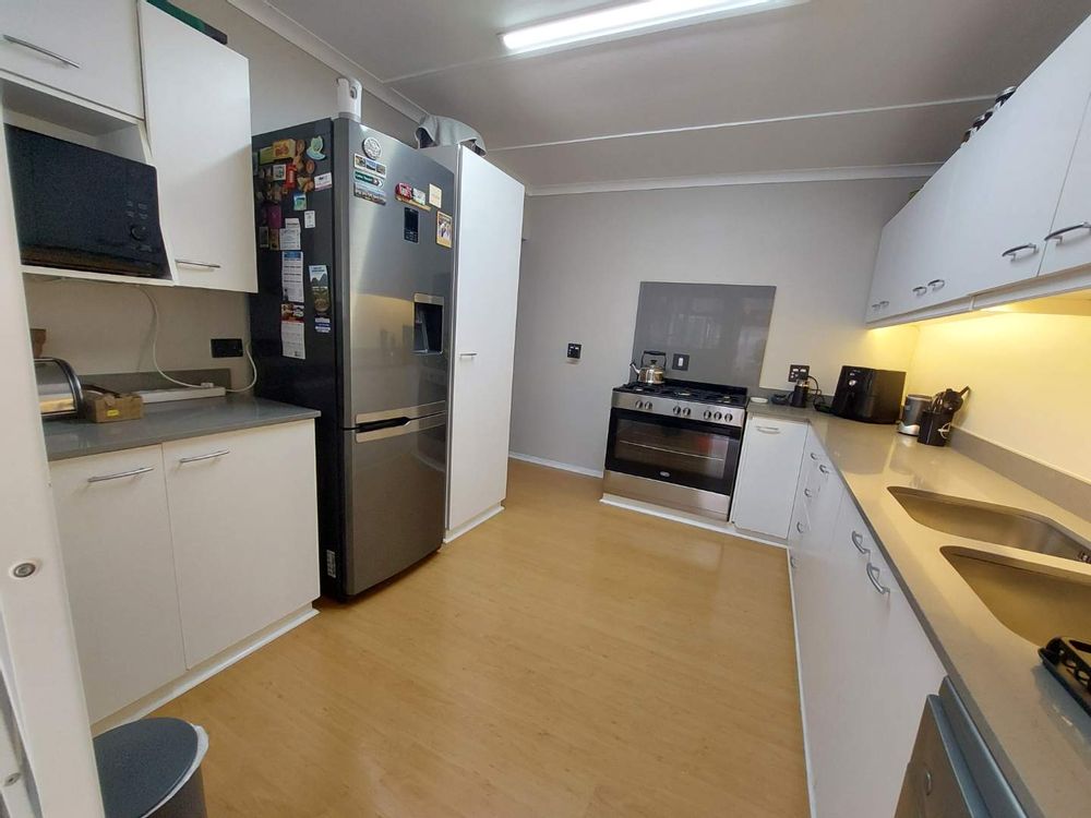 The home is thoughtfully equipped with 20lt Gas Geyser, 5kw Inverter and battery system, supported with six solar panels for energy efficiency. The beautiful, well-organized kitchen is equipped with a Defy Gas Stove featuring five burners. Offering ample space and functionality of preparing delicious meals, with stunning Caesar Stone countertops, adding both elegance and durability to the space. Experience the warm and cozy atmosphere in the winter’s day with the elegant 8kw Plamen Tara Fireplace, designed to heat the entire home. The property includes a lock-up garage, a single carport and a double carport secured behind closed gates.
